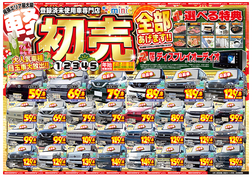 minic(ミニック)は愛知県尾張エリア最大級の登録済未使用車専門店です。